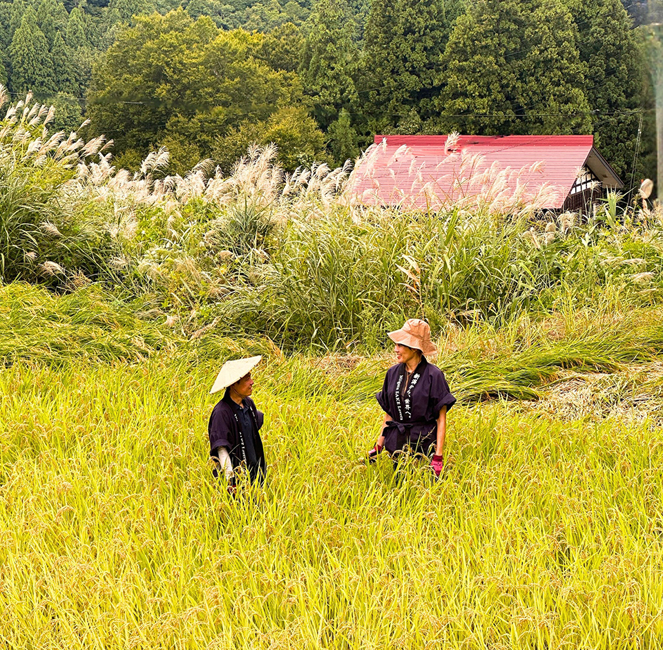 醸造責任者の南雲さんは「0からのスタートなので工夫することがたくさんあるのが楽しい」とほほ笑みながら、その思いは里山の棚田に通じると言う。「棚田は一つ一つ形も違うし環境も違い個性があり、それぞれの場所で最高の米がとれるよういろいろな工夫をしている。酒造りも一緒ですね」。雪と大地の恵みを酒造りに活用できることに、智美さんも南雲さんも感謝と喜びを感じている。